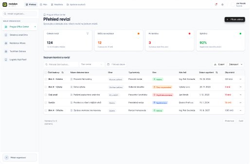 Získáte okamžitý přehled o stavu revizí napříč budovami a zařízeními. Máte přehled o blížících se termínech, revizí po termínu i oblastech, které vyžadují zvýšenou pozornost. Díky detailním informacím a přiloženým dokumentům máte vždy po ruce vše potřebné pro kontrolu i rozhodování.